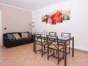...appartamento, con pavimentazione interamente in parquet e dotato di aria condizionata, ci troviamo nella zona giorno con cucina a vista, arredata con un divano che guarda alla zona TV, un tavolo da 4 persone e un armadio per il materiale di pulizia....