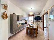 ...e ha ingresso su un'accogliente sala da pranzo con accesso al primo balcone e al tinello, separato da porte scorrevoli. La zona notte è composta da due confortevoli camere matrimoniali - di cui una comprensiva di balcone - e il bagno finestrato...
